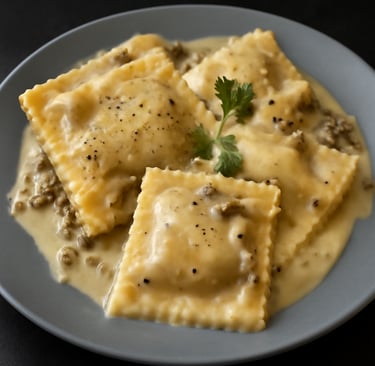 Raviolis artesanos de setas y trufa